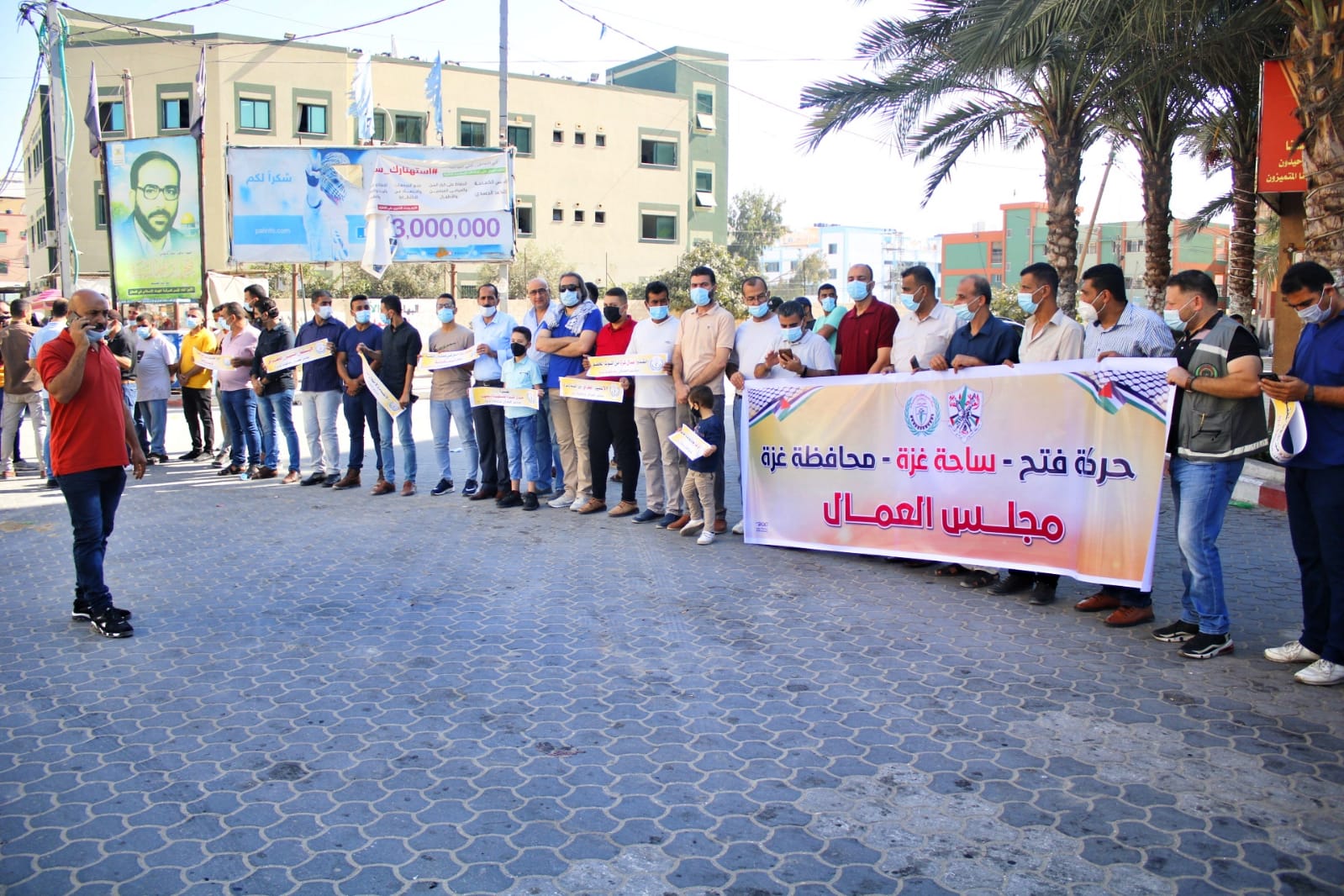 بالصور|| مجلس العمال ينظم وقفة احتجاجية رفضا للتمييز العنصري والجغرافي بحق عمال غزة