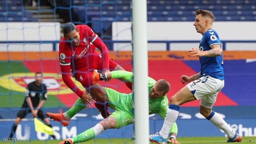 وخرج مدافع ليفربول الهولندي، فيرجيل فان دايك، من المباراة مبكرا بسبب الإصابة بعد التحام مع حارس مرمى إيفرتون جوردان بيكفورد.