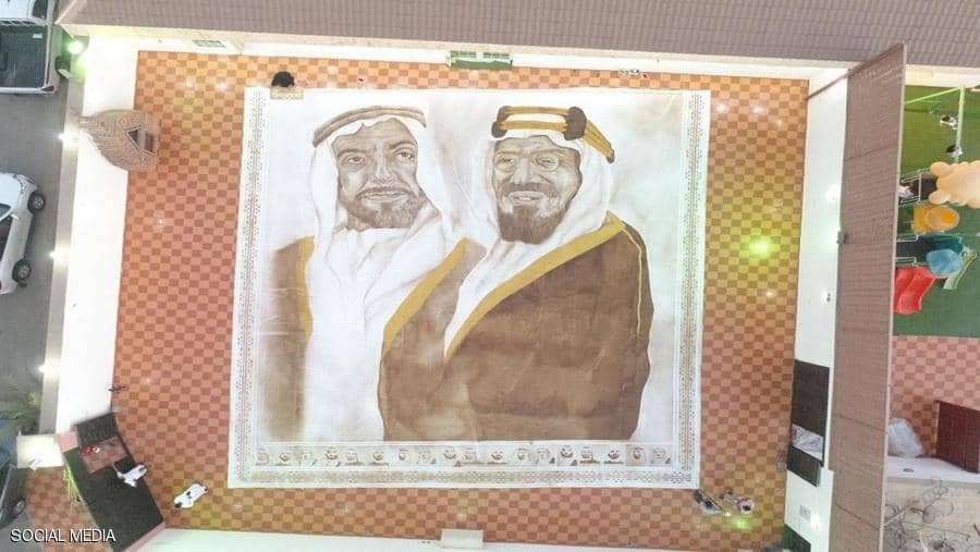 وتضمنت لوحة عهود عبد الله المالكي المقيمة في مدينة جدة على ساحل البحر الأحمر، رسوما لـ 7 شخصيات سعودية وإماراتية من بينهم الملك الراحل عبد العزيز آل سعود ومؤسس الإمارات الشيخ زايد آل نهيان.