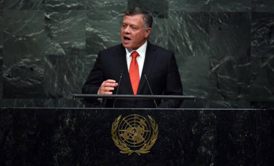 وقال العاهل الأردني في خطابه أمام الجلسة العامة لاجتماعات الدورة الثالثة والسبعين للجمعية العامة للأمم المتحدة، في نيويورك، اليوم الثلاثاء، إن جميع قرارات الأمم المتحدة التي صدرت منذ بداية هذه القضية، جميعها دون استثناء سواء الصادرة عن الجمعية العامة أو مجلس الأمن، تقر بحق الشعب الفلسطيني، كباقي الشعوب، بمستقبل يعمه السلام والكرامة والأمل. وهذا هو جوهر حل الدولتين، الذي يشكل السبيل الوحيد لسلام شامل ودائم.