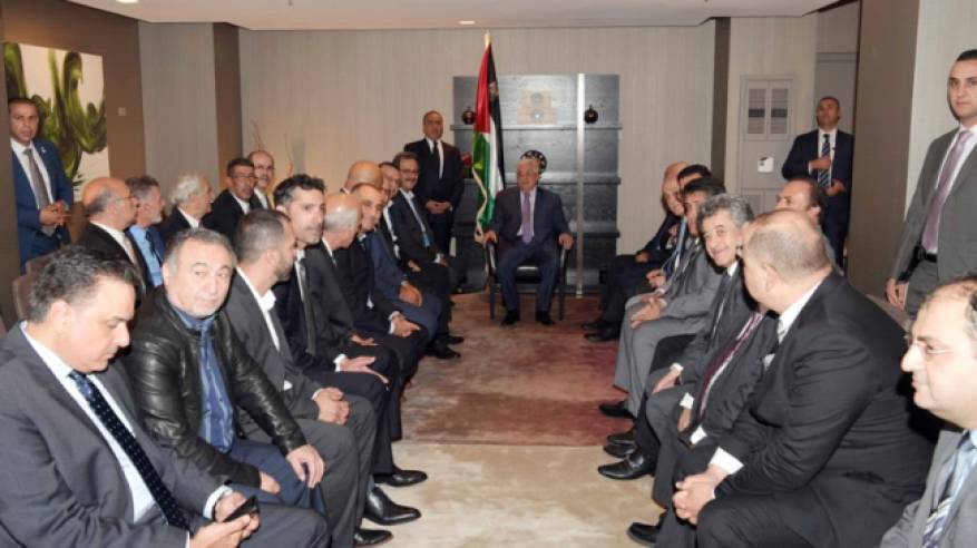 نيويورك: استقبل الرئيس الفلسطيني محمود عباس، بمقر إقامته في نيويورك، يوم الثلاثاء، وفدا من أعضاء الجالية الفلسطينية في الولايات المتحدة الأميركية.