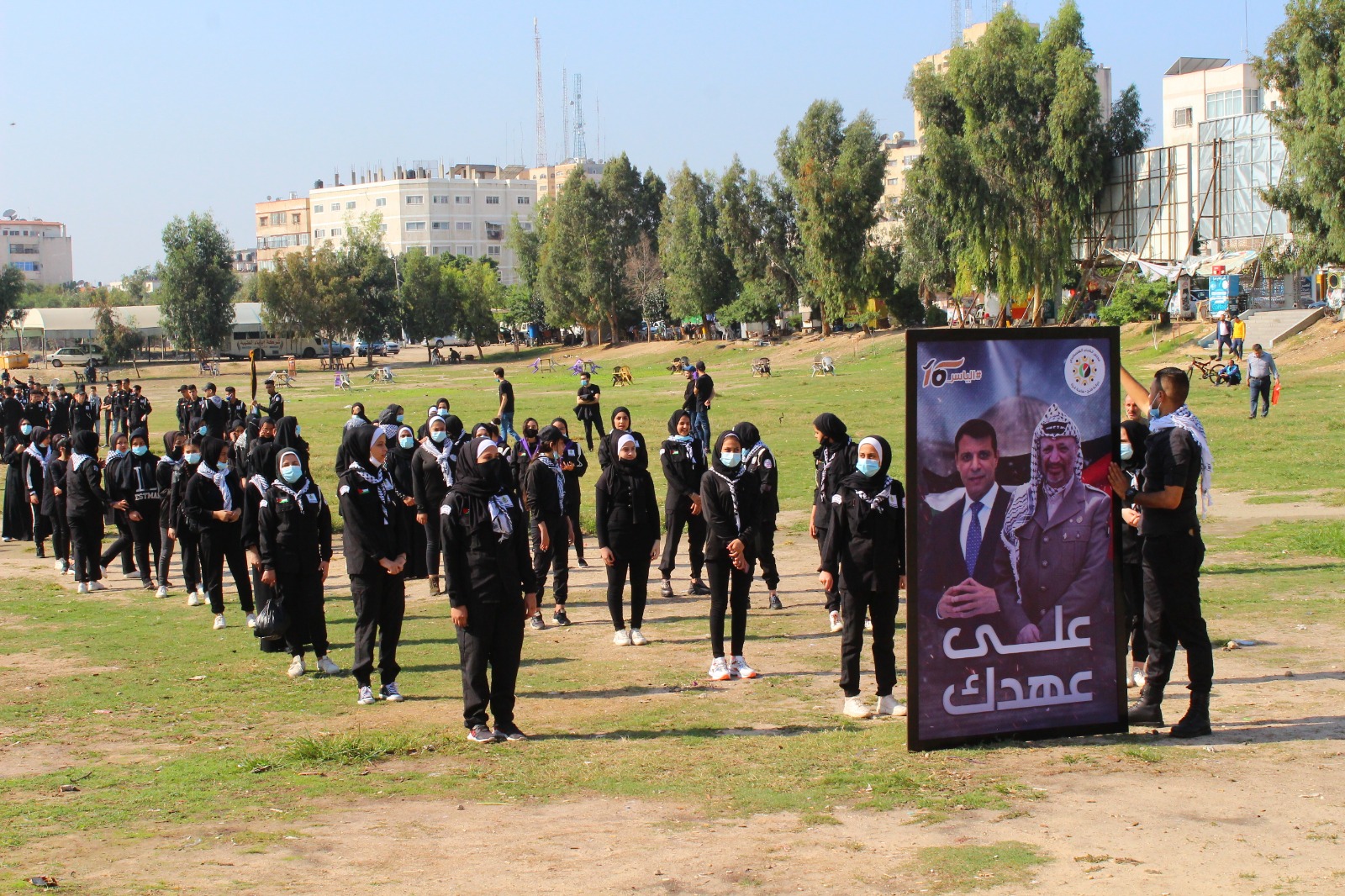 من جانب آخر وضعت قيادة ساحة غزة اكليلا من الورد على النصب التذكاري للجندي المجهول ورفع صورة الشهيد ياسر عرفات والقائد محمد دحلان واعتلى شابا من لجنة مستقبل وطن الكشفية هرم الجندي ورفع صورة ابا عمار مشيرا بيده بشارة النصر التي كان دوما الزعيم ياسر عرفات يؤشر بيده بشارته نحو القدس.