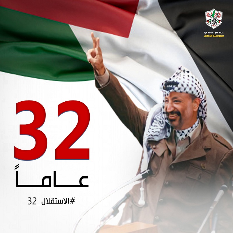 غزة: أطلق نشطاء ورواد مواقع التواصل الاجتماعي، في تيار الاصلاح الديمقراطي التابع لحركة فتح بساحة غزة، حملة الكترونية للتغريد على هاشتاق "#الاستقلال32" بمناسبة ذكرى الاستقلال الفلسطيني الذي أعلنه الرئيس الرمز الراحل ياسر عرفات أبو عمار، في دولة الجزائر الشريف عام 1988.