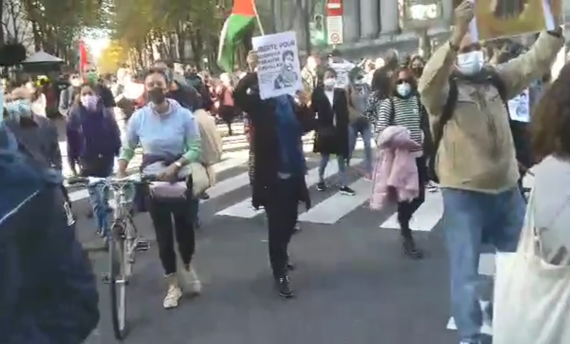 مدريد: نظم مئات الفلسطينيين والمتضامنين مع القضية الفلسطينية، وقفة احتجاجية ومسيرة رافضة، اليوم السبت، في إقليم الباسك في إسبانيا.
