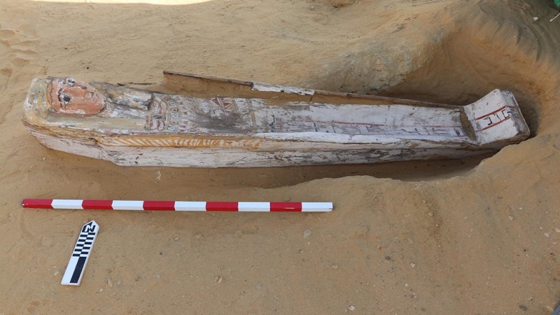 وتم الكشف عن عدد من آبار الدفن التي يصل عددها إلى 52 بئرًا للدفن بها 50 تابوتًا خشبيًا تعود إلى 3 آلاف عام قبل الميلاد، إضافة لمركب ومشغولات يدوية أثرية وعدد من الأواني الفخارية.