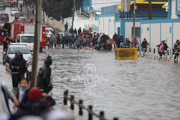 غرق عشرات المنازل وإغلاق طرق بفعل الأمطار الغزيرة في قطاع غزة