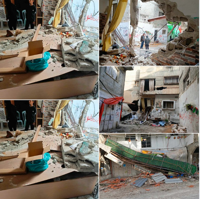 وهدمت قوات الاحتلال منزل الشهيد غيث شحادة في حارة الجورة بالمخيم، الذي استُشهد في السابع عشر من كانون الأول الماضي.