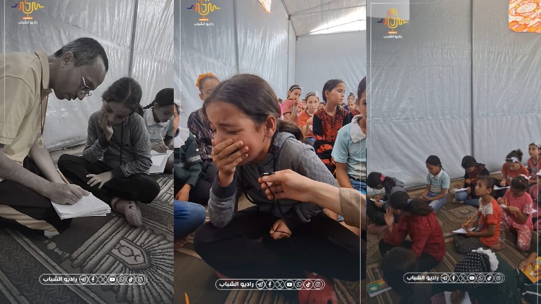 خلال حصة مدرسية في خيمة نزوح.. ديما تستذكر ذويها الذين قضو في العدوان على غزة