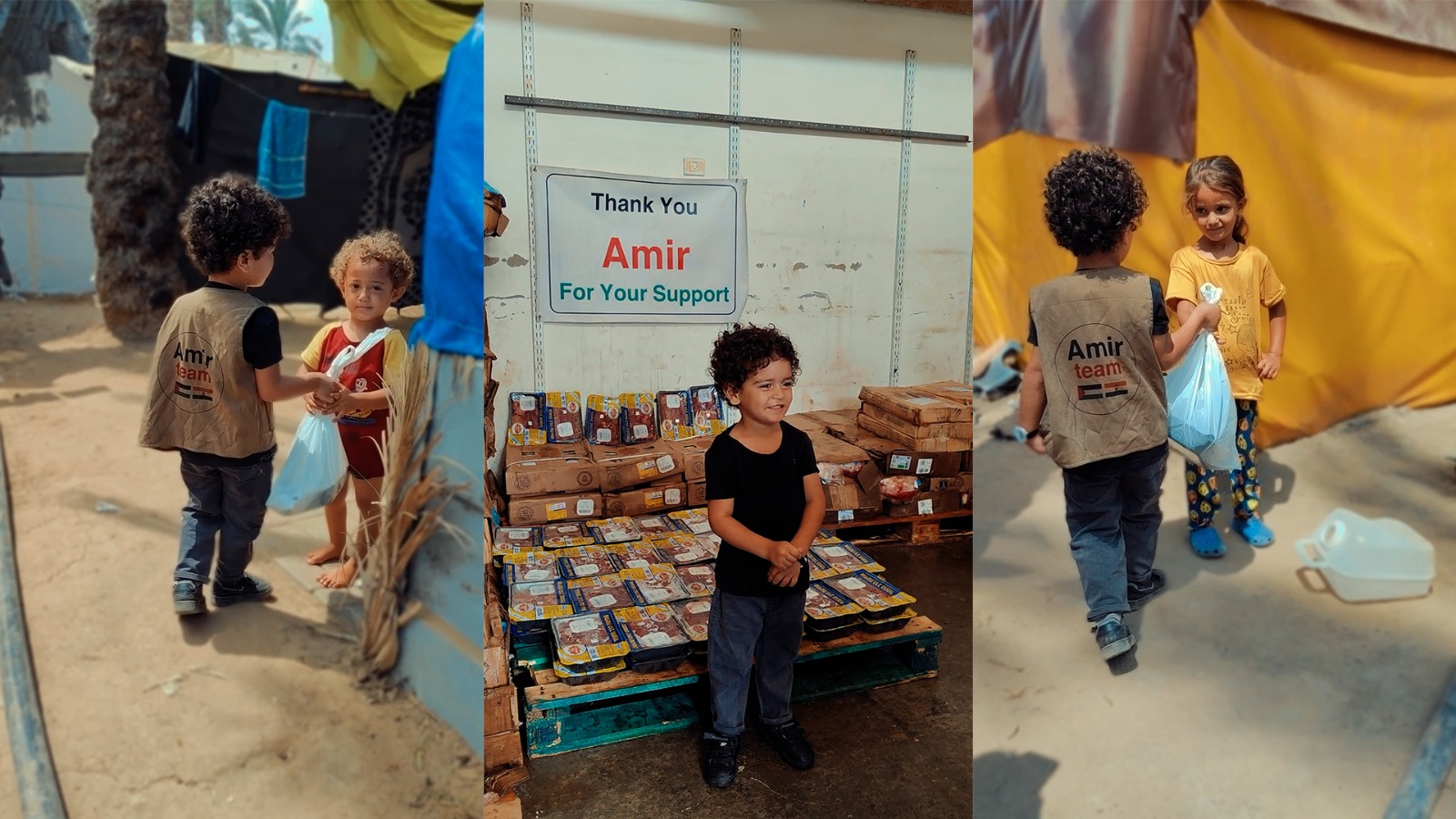الكوفية "جيمو" أصغر طفل يساهم في توزيع المساعدات على النازحين وسط قطاع غزة