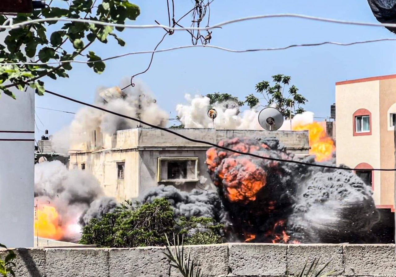 الكوفية استـ.ـهداف منزل يعود لعائلة وشاح مكنون من اربع طوابق وقد سوي بالارض في مخيم البريج وسط القطاع
