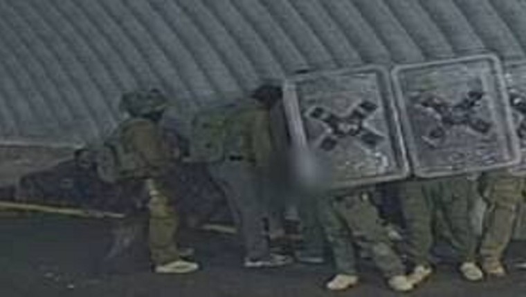 وحاول الجنود التغطية على أفعالهم برفع الدروع التي كانوا يحملونها لحجب ما يجري عن الكاميرات المثبتة في المكان.